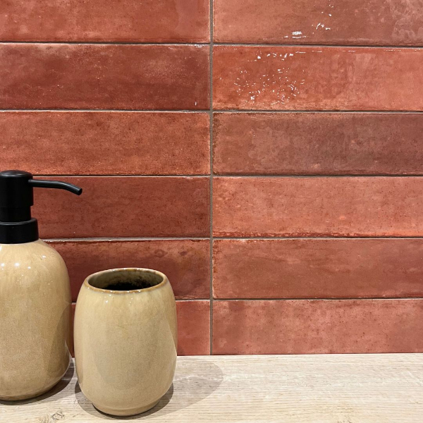 Cardiff Hibiscus er en keramisk flise som har et rustikt og charmerende udtryk. Flisen har en varm farve, inspireret af hibiscusblomster. Farven varierer fra flise til flise, hvilket giver et dynamisk og levende udtryk. Cardiff Hibiscus har en blank overflade og måler 6×24 cm.