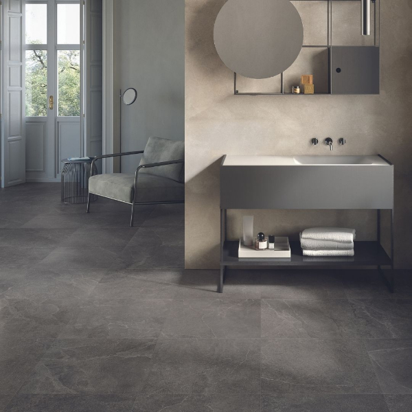 Stenlooket som ses på flisen, kan matche godt med andre materialer. F.eks. kan metal stå flot mod det naturlige udtryk, eller træ kan benyttes til at fremhæve de naturlige elementer i flisen. Med flisens farve, og dens stenlook kan den skabe en flot dybde til de fleste indretningsstile.